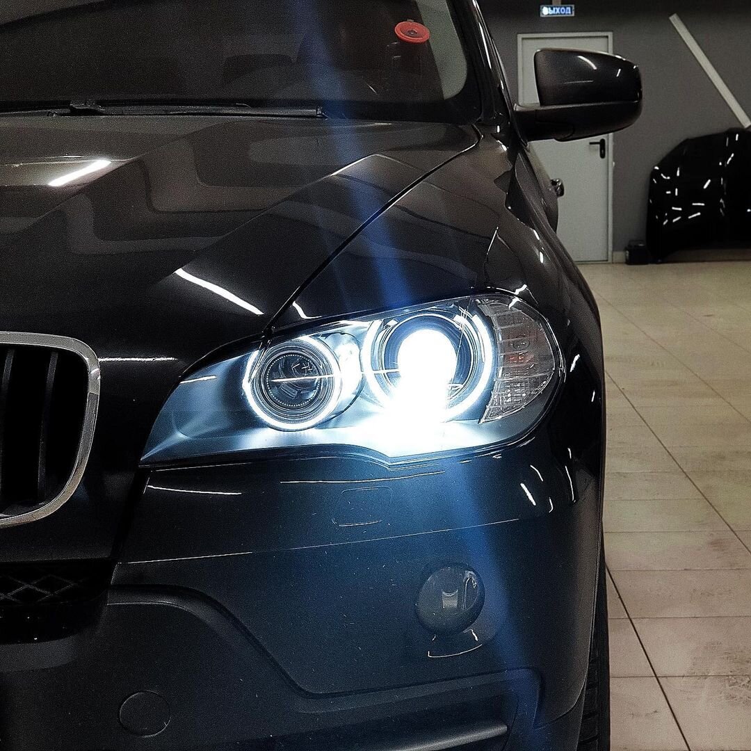 Проделанные работы 🔻• Замена стёкол фар на новые• Бронирование полиуретановой плёнкой Spectroll• Замена «ангельских глазок» на новые светодиодные• Установка модулей Aozoom laser 2
