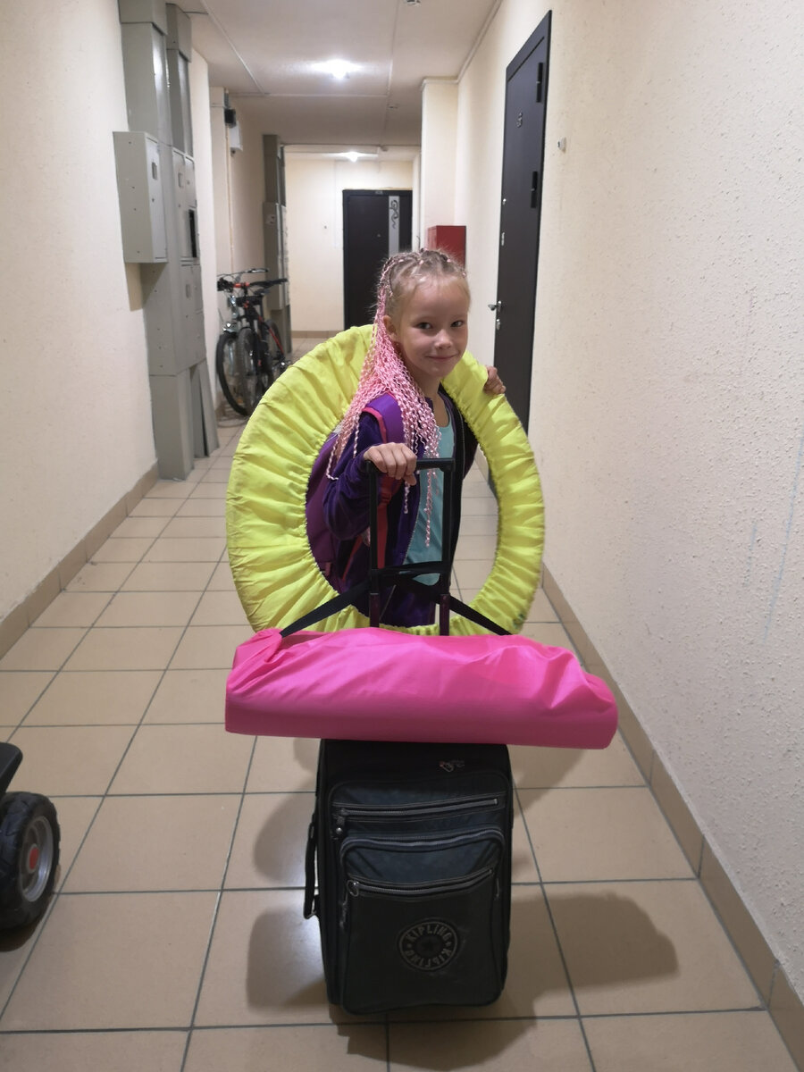 Отправила ребенка в лагерь. На две недели. В Ленинградской области лагерь. Дочь сама захотела в лагерь со всеми девчонками. Если бы она резко была против - не отправила бы. Но я несколько раз, и так и сяк спрашивала - "Поедешь? Точно? Не откажешься?". Да, значит да, ок. Хотя за пару дней она начала переживать и волноваться - а как оно там будет? Думаете отдыхать? Не-а. Вкалывать. Натурально. Потому что это спортивный лагерь по художественной гимнастике. На две недели - потому что маленькая еще. Семь лет, первый раз поехала в лагерь. Подрастет - поедет на три недели. Почему вкалывать? Потому что тренировки занимают 7 часов ежедневно. И свободного времени минимум. Вернее - его нет, совсем. Вещей - воз и маленькая тележка. Булавы, мяч, обруч, резинки и растяжки, утяжелители, чемодан с вещами, форма, коврик для йоги, отдельный рюкзак для тренировок, еще одна сумка для бассейна с принадлежностями. Вот такое расписание в лагере: 8.00 - подъем