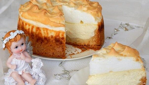Кол-во порций: 8 шт. Ингредиенты к рецепту «Творожный торт „Слёзы ангела“»: Песочное тесто Масло сливочное 80 г Мука пшеничная 1 ст. Разрыхлитель 1 ч. л. Сахар 2 ст. л. Яйца куриные 1 шт. Творожная начинка Ванилин 1 щепотка Крупа манная 1 ст. л. Сахар 0.5 ст. Сметана 100 г Творог 500 г Белковое суфле Сахарная пудра 3 ст. л. Яйца куриные 3 шт. Это не пирог и не торт, а чудо чудесное в полном смысле слова. Tорт «Слёзы ангела» вышел у меня на славу. Интересное название он получил благодаря особому свойству — по остыванию на поверхности торта начинают образовываться карамельные капельки-слёзки. По вкусу творожный торт «Слёзы ангела» превзошёл всё ожидания: песочная рассыпчатая основа, которая не размякла даже из-за довольно жидкой начинки, нежнейший творожный слой, а сверху — воздушное белковое суфле. И, несомненно, изюминка торта — «слёзки ангела». Для приготовления творожного торта «Слёзы ангела» нам понадобятся такие продукты: сливочное масло, творог, мука