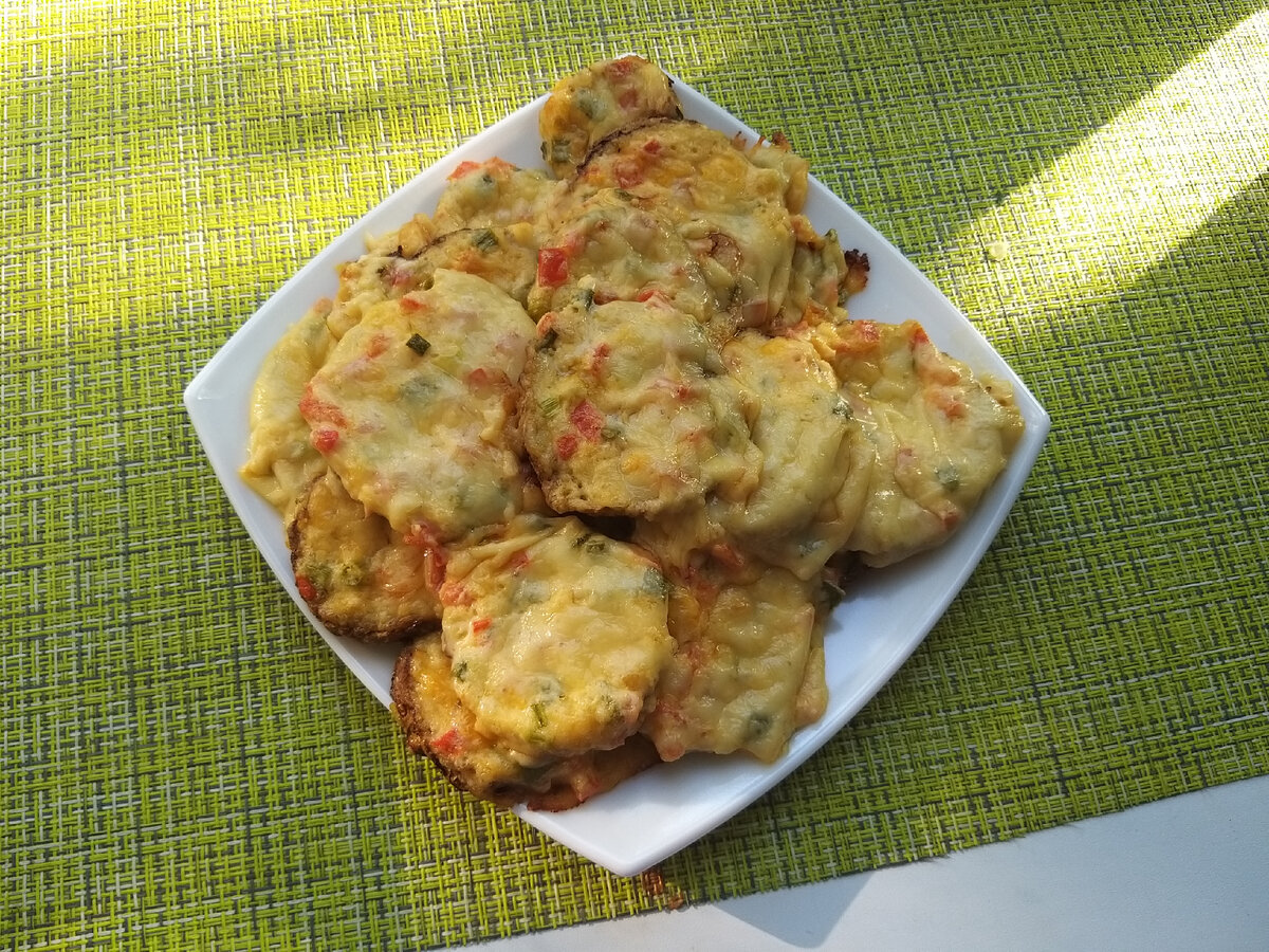 Сегодня я решила поделиться с Вами рецептом очень вкусных кабачков. Они получаются нежные и буквально таят во рту. Для приготовления не требуется сложных ингредиентов, а сам процесс готовки займет 40-60 минут – это зависит исключительно от Вашей скорости. Таким блюдом Вы приятно удивите своих гостей. Итак, для приготовления нам потребуются следующие ингредиенты: - кабачок (1 шт.); - чеснок (4 зубчика); - помидор (черри 10 шт., если обычный большой, то одного достаточно); - твердый сыр (50 гр.); - зеленый лук (маленький пучок); - плавленый сырок (1 шт.); - майонез; - подсолнечное масло для жарки; - соль по вкусу. Приступаем к готовке. Хорошо моем кабачок и нарезаем его колечками. Толщина колечек примерно 5 миллиметров. Ставим сковороду на средний огонь. Наливаем в сковороду подсолнечное масло. Раскладываем на сковороду колечки из кабачков. Слегка солим их. Жарим примерно три минуты. Переворачиваем кабачки на другую сторону. Также слегка солим и жарим еще около трех минут