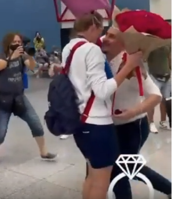 Прямо в аэропорту ее встретил молодой человек, встал на колено и сделал предложение. Анастасия ответила "да".Серебро на шее, золото на пальце - что может быть лучше в этом мире!