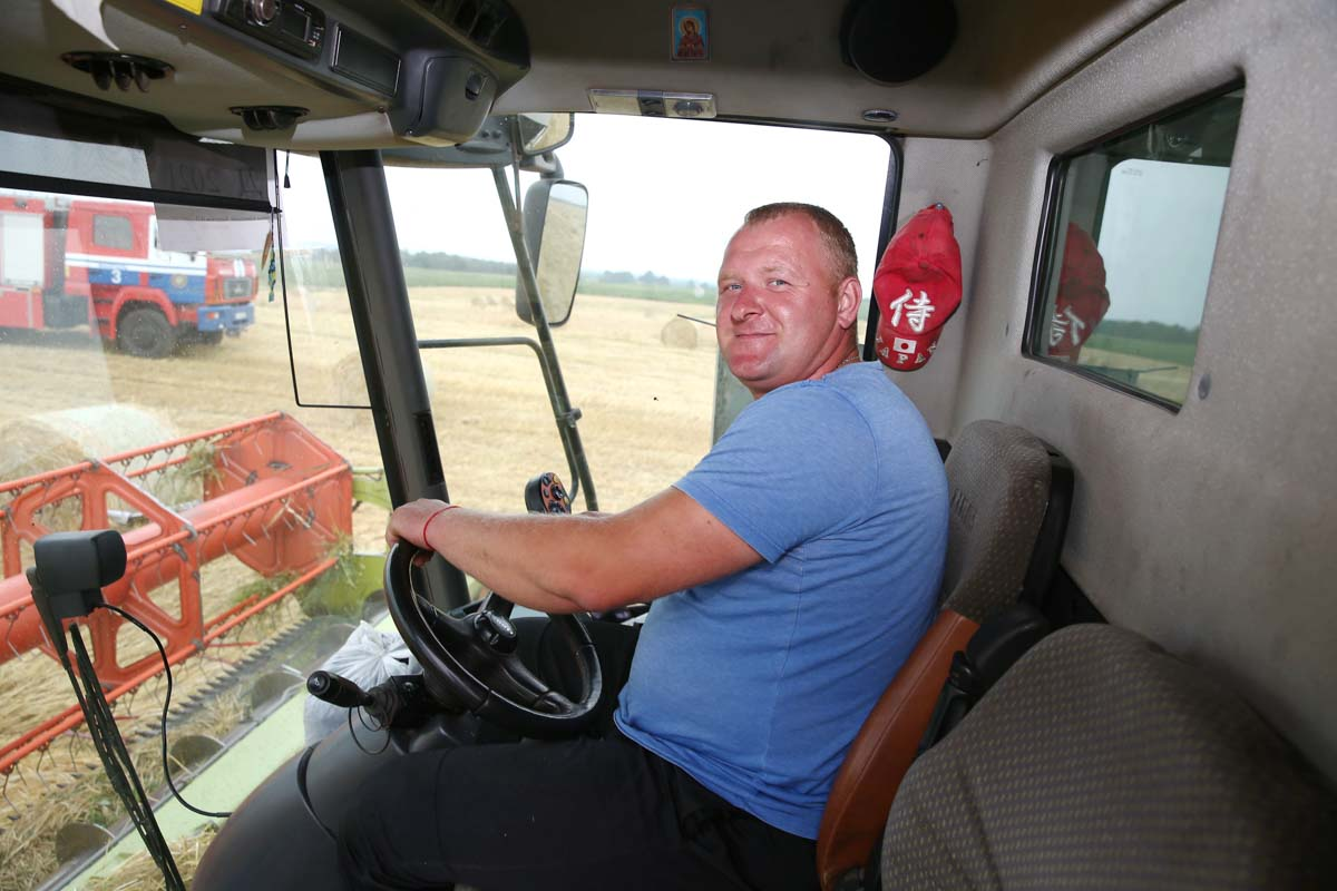 Если для горожан лето – пора отпусков, то для аграриев это во всех смыслах пора горячая. Корреспондент МЛЫН.BY решила узнать о труде комбайнера непосредственно из кабины «корабля полей». При подъезде к деревне Строчицы Минского района асфальтированное покрытие сменилось брусчаткой, затем и вовсе песком, а ограждения вдоль дороги – стеной кукурузы. Машина и пассажиры покрылись пылью, но это ерунда по сравнению с чарующими видами. Жаль, что полюбоваться ими не получилось – к нам навстречу с внушительной скоростью двигался огромный зерноуборочный комбайн. – Вы уж извините, спокойно побеседовать не получится, погода отличная – самое время для жатвы, – комбайнер ОАО «Щомыслица» Александр Маковецкий приглашает занять место в машине. – А у вас здесь шумно! Не болит голова к концу дня? – спрашиваю. – Это вы, наверное, ко мне так торопились, что не позавтракали и не смогли дверцу закрыть, – улыбается Александр и со всей силы захлопывает дверь. И действительно, теперь практически ничего не слышн