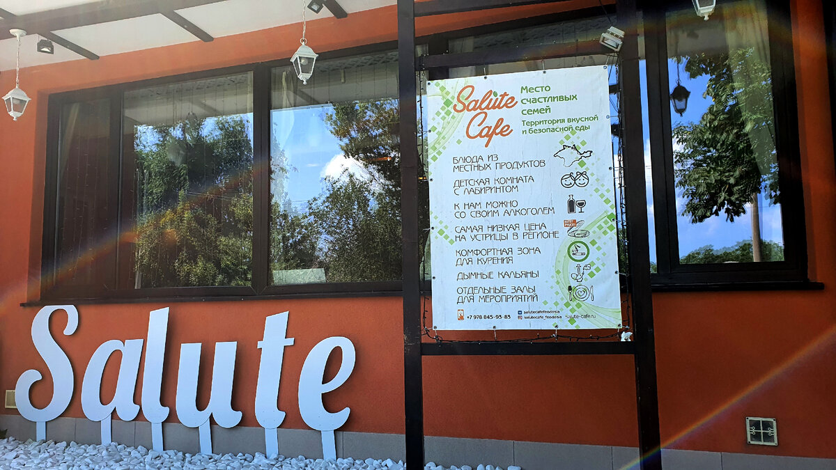 Мы не могли, приехав на отдых в Крым, на Черное море, не посетить кафе, где подают блюда из морепродуктов (мое небольшое видео можно будет посмотреть, перейдя по ссылке в конце статьи). ***Все фото в статье - мои, видео по ссылке в конце публикации - тоже. Мы тщательно изучили в интернете отзывы на кафе и рестораны в Береговом и его окрестностях, и остановили выбор на заведении Salute Cafe в Феодосии, куда приехали на такси из своего курорта Береговое, который граничит с Феодосией: В его пользу оказались такие аргументы: Итак, на обед мы заказали: Устрицы свежие черноморские по цене 190 рублей штука (это очень выгодная цена при том, что в придорожных забегаловках цена варьируется от 270 до 350 рублей). Мы заказали 10 раковин и смотрели, как их вылавливают прямо из специально оборудованного аквариума: К ним дополнительно мы взяли свежие лимоны: 10 двойных долек по цене 200 рублей, а также соус на основе соевого соуса и уксуса с красным луком и специями по цене 50 рублей за порцию: