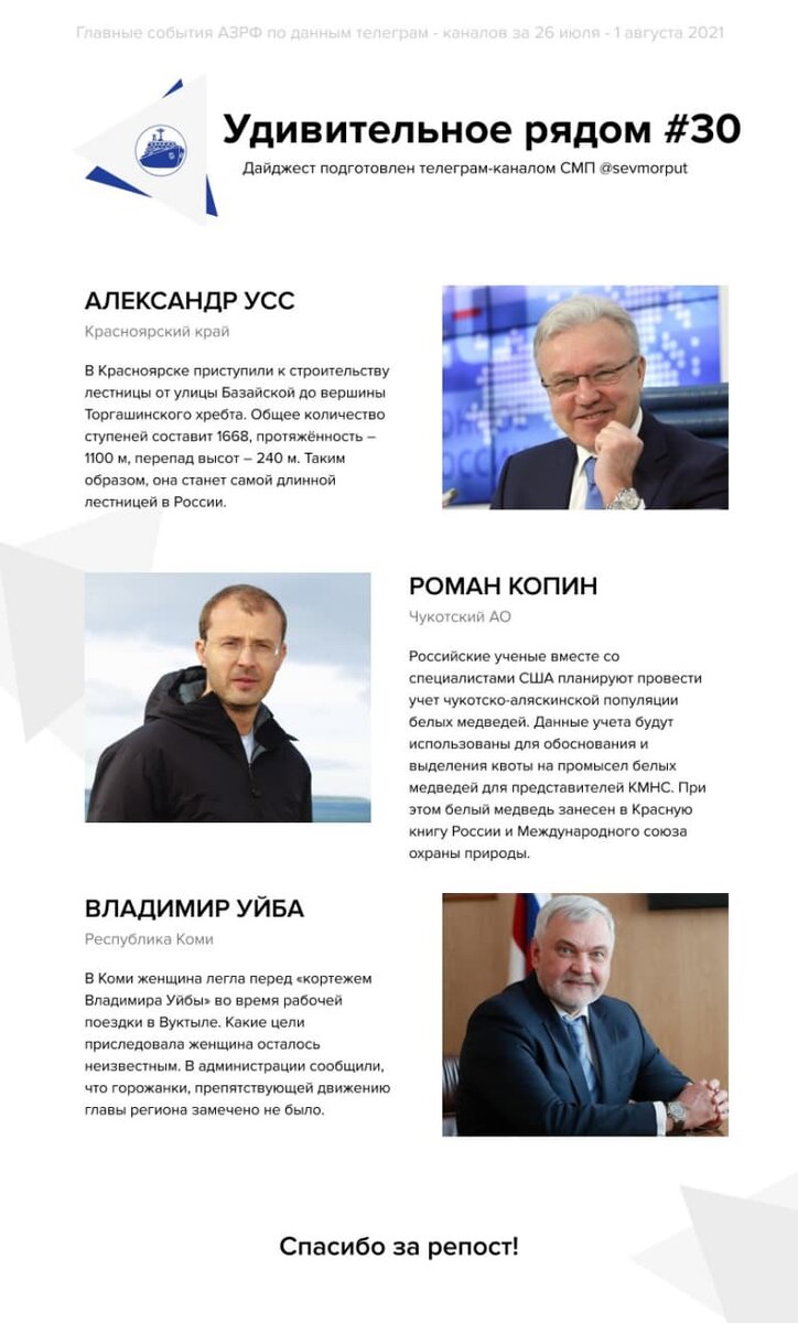 Представляем еженедельный рейтинг «Главы АЗРФ – Удивительное рядом. Неделя 30»