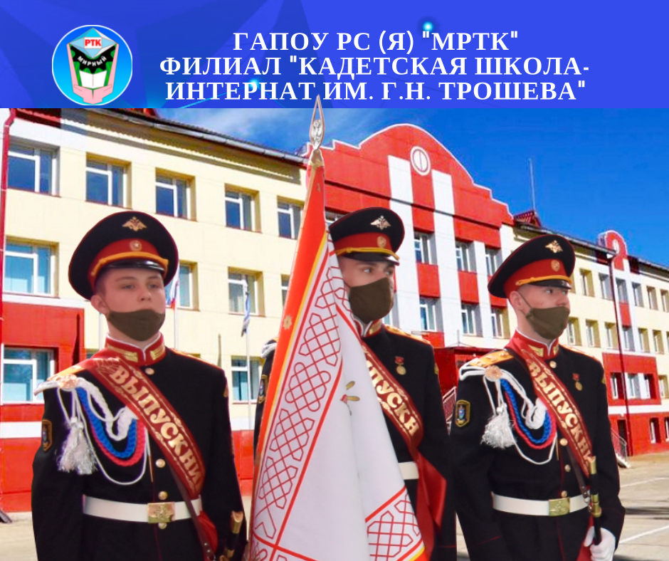 «Кадетская школа-интернат имени Геннадия Николаевича Трошева - филиал МРТК объявляет набор юношей на новый учебный год. Обучение бесплатное, начинается с шестого класса. Кадетская школа - начальное военно-учебное заведение с программой среднего учебного заведения для подготовки молодых людей к военной карьере.