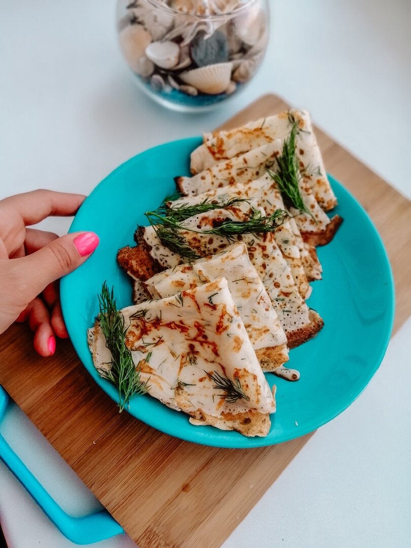 Эти блинчики для нас, девочки! Для стройных красоток! Рецепт: -250 гр. мягкого творога (у меня DANONE) -3 яйца -100 мл. молока -6 ст.л. рисовой муки -80 гр. тёртого сыра (в идеале маленькой жирности) -укроп, немного соли(если сыр не солёный) Начинаем готовить! Смешать творог и яйца до однородности. Добавить муку, перемешать хорошо, влить молоко и снова перемешать. Добавить сыр, зелень. Жарить на блинной сковороде с двух сторон(переворачивать только, когда тесто заметно схватилось. Иначе рискуете получить "блин комом") Я люблю готовить эти блинчики на завтрак, особенно в выходной день, когда никуда не нужно бежать! Отлично сочетаются со сметаной! Приятного Аппетита, дорогие! Вам понравился рецепт? Приготовите такие блинчики?