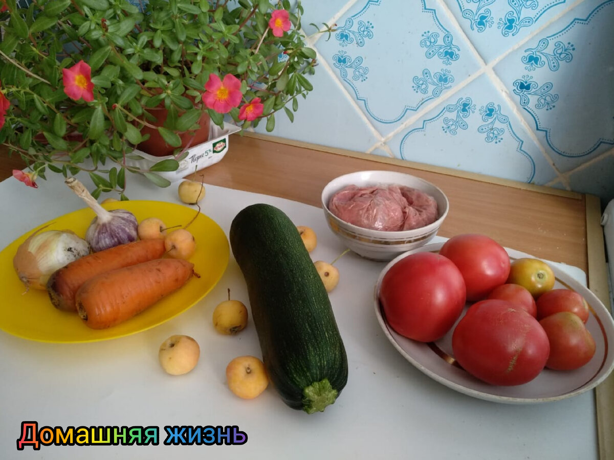 Я каждый год высаживаю у себя на даче цукини. Они мне нравятся больше чем кабачки и по плотности и по содержанию. Очень много разных блюд я уже с ними пробовала готовить и продолжаю всегда пробовать что-то новенькое. В этот раз очередной сбор урожая цукини я отдала свекрови. Она из них приготовила очень вкусное блюдо и научила меня, как именно его готовить. Я готовлю это блюдо в казанке. Моя свекровь готовит его в глубокой сковороде. Итак, приступим. Для начала возьмём луковицу и нарежем её на кубики. Отправляем лук в казанок и обжариваем его чуть. Далее добавляем в казанок фарш. Фарш может быть как куриным, так и говяжьим. Если делать из свиного и домашнего, то надо быть готовыми к тому, что блюдо получится жирное. Добавляем соль и перец. Обжариваем фарш вместе с луком пока фарш не поменяет цвет и далее отправляем в казанок морковь. Морковь прежде я натерла на крупной тёрке. Если у вас такой нет, то можно просто полукольцами нарезать её ножом. Обжариваем минут пять. А в это время