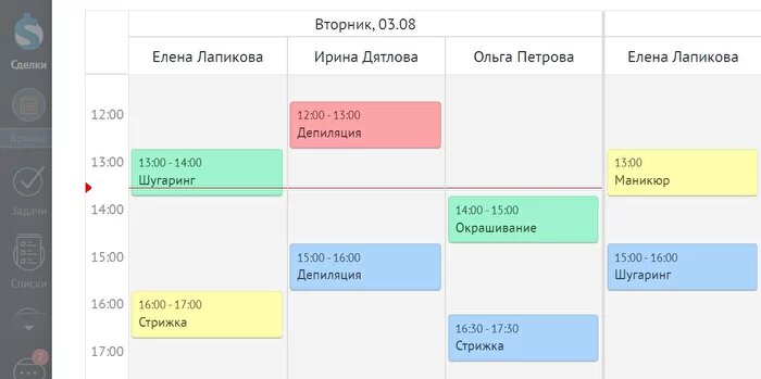 Менеджер amoCRM в режиме онлайн видит все свободные для бронирования даты, время и специалистов. Достаточно просто выбрать необходимые условия в электронном календаре. Управление параметрами записи в пару кликов Отправка автоматических сообщений Настройка автоматической отправки сообщений в мессенджеры с приглашением клиента записаться на повторную услугу через определенное время при помощи salesbot. Для правильной работы виджета Система записи нужно настроить списки услуг и специалистов (ресурсов) и добавить график работы каждого из них. На основании внесенной информации виджет формирует расписание и ведет учет записей клиентов. Созданная в календаре запись сразу прикрепляется к сделке в amoCRM, при необходимости ее можно отредактировать.