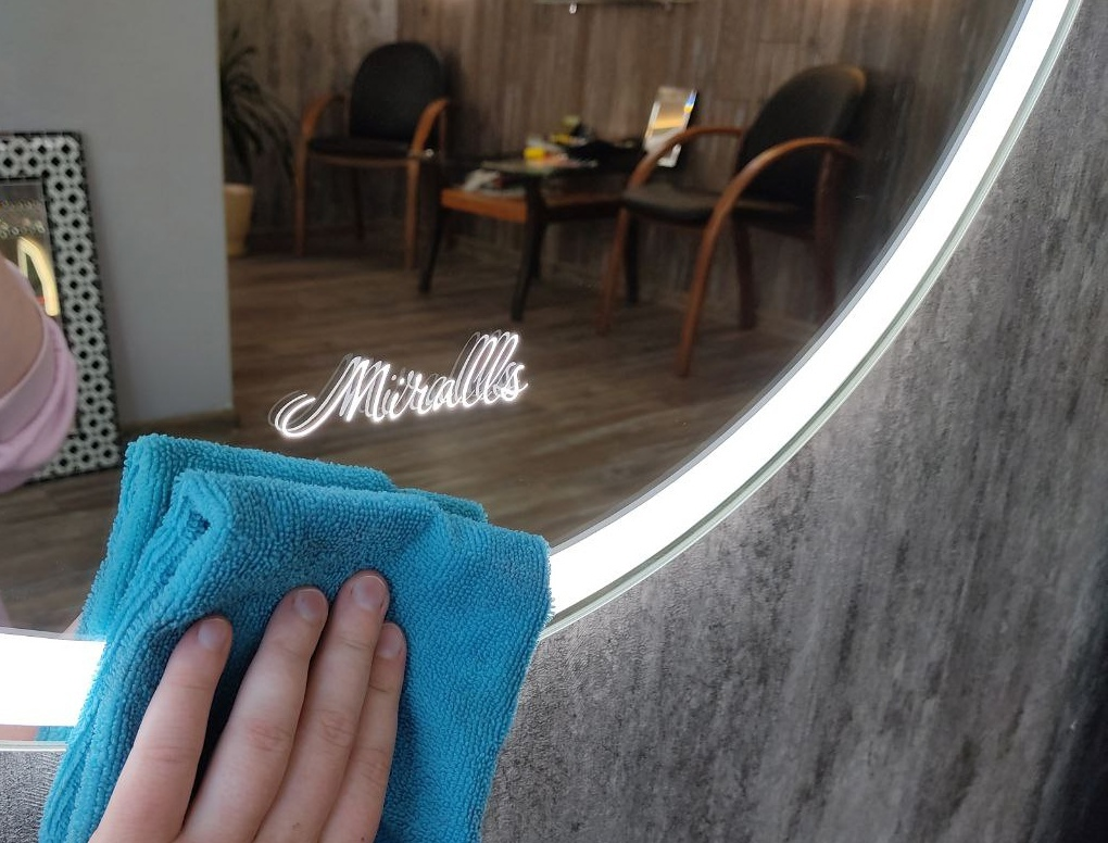 Сократив взаимодействие с зеркальным полотном путём прикосновений к нему Вы можете дольше сохранять зеркало в чистоте.