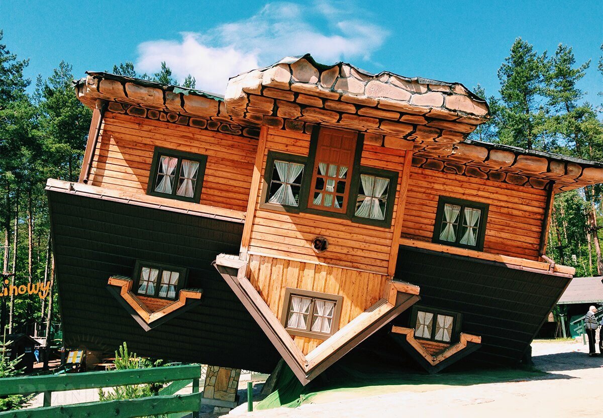 Дом в виде чайника. Или утюга. Или какого-либо овоща. Или дом вверх дном. В буквальном смысле. Перевернутый дом. Что это? Протест против существующих порядков? Желание выделиться из толпы? Замануха для туристов? Однозначно на этот вопрос ответить сложно. Однако доподлинно известно, что мода на нестандартные дома пришла в Россию из соединённых штатов Америки. Где собака порылась. А первый дом-перевертыш построили в 2007 году в Польше. В нем расположился этнический музей. Однако не обошлось без политической подоплёки. Создатель перевёрнутого дома, Даниэль Чапевски, проектом решил подчеркнуть нестабильность современного мироустройства после падения коммунистического строя. Дома-перевертыши в России. В России же насчитывается с десяток домов-перевертышей в разных городах. Начнем, как водится, со столицы. В Москве перевернутый дом располагается на ВВЦ с 2014 года. Убранство дома (и внешнее, и внутреннее) выполнено в европейском стиле. В двухэтажном доме расположатся детская, спальня и совм