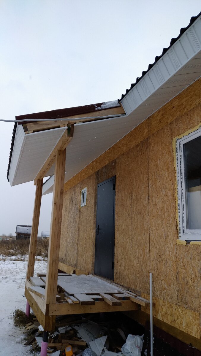 Приветствую всех на просторах Яндекс Дзен по теме стройка дома и не только. Здесь я как могу описываю этапы стройки своего каркасника в реалиях нынешнего времени. В предыдущих статьях уже описаны следующие этапы и виды работ - выбор и монтаж фундамента, сборка каркасно стеновых панелей и коробки дома под кровлю, устройство чернового пола, монтаж окон, и обшив потолка. На этот раз пришло время рассказать и показать про обшив свесов кровли. И так время уже к холодам, первый снежок и все такое) А под крышей в чердаке гуляет ветер, летают птички прячась от холода и не только, а это не очень хорошо для зимовки да и для дома тоже. Понимаю что в "одну маску" мне с такими работами опять не справится, обращаюсь как всегда к уже проверенным плотникам-строителям за помощью. Высылаю эту фотку и спрашиваю чем и как обшить свесы? Ну выбор не так велик, можно пластиком типа "сайдинг" и не только, так же можно металлическими панелями или деревом (доска и проч.). Останавливаемся на так называемых софи