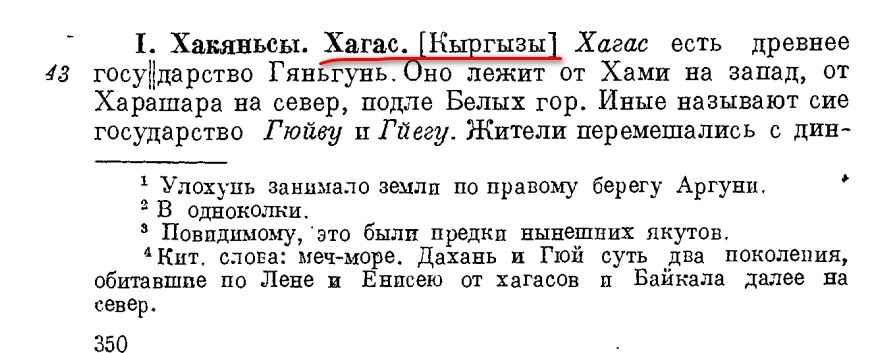 А что же было ранее? По текстам Бичурина - было государство Хагас. Они же суть кыргызы. Привожу текст в виде скана самого Бичурина.