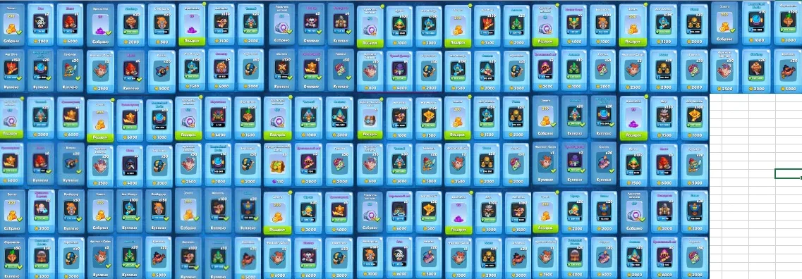 Всем Привет Это 3 часть проверки магазинов Сегодня мы посмотрим на статистику 100 сетов магазинов Дисклеймер автор основывается на своем опыте и не утверждает что шанс на 100% реален из за маленького количества "материала" лега переехала с 5 слота в 6 первый слот- золото/х2 жетоны/кристалы/сундуки золото - 39% х2 жетоны - 27% кристалы - 24% сундук - 10% второй слот - эпик карты/обычные карты/редкие карты/сундук обычные 55% редкие - 31% эпик - 12% сундук - 2% Третий слот - эпик карты/обычные карты/редкие карты эпик - 9% редкие - 39% обычные - 52% Четвертый слот - обычная карта/редкая карта/эпик карта/сундук обычная карта - 56% редкая карта 33% эпик карта 10% сундук - 1% Пятый слот - эпик карта/редкая карта эпик карта - 52% редкая карта - 48% Шестой слот -эпик карты/редкая карта/ тренер/сойка/легендарная карта/боссы Легендарна карта - 2% эпик карта - 46% редкая карта -19% обычная карта 15% Тренер - 5% сойка - 2% бедлам-1% трибунал-1% Всем Спасибо за прочтение пишите комментарии ставьте