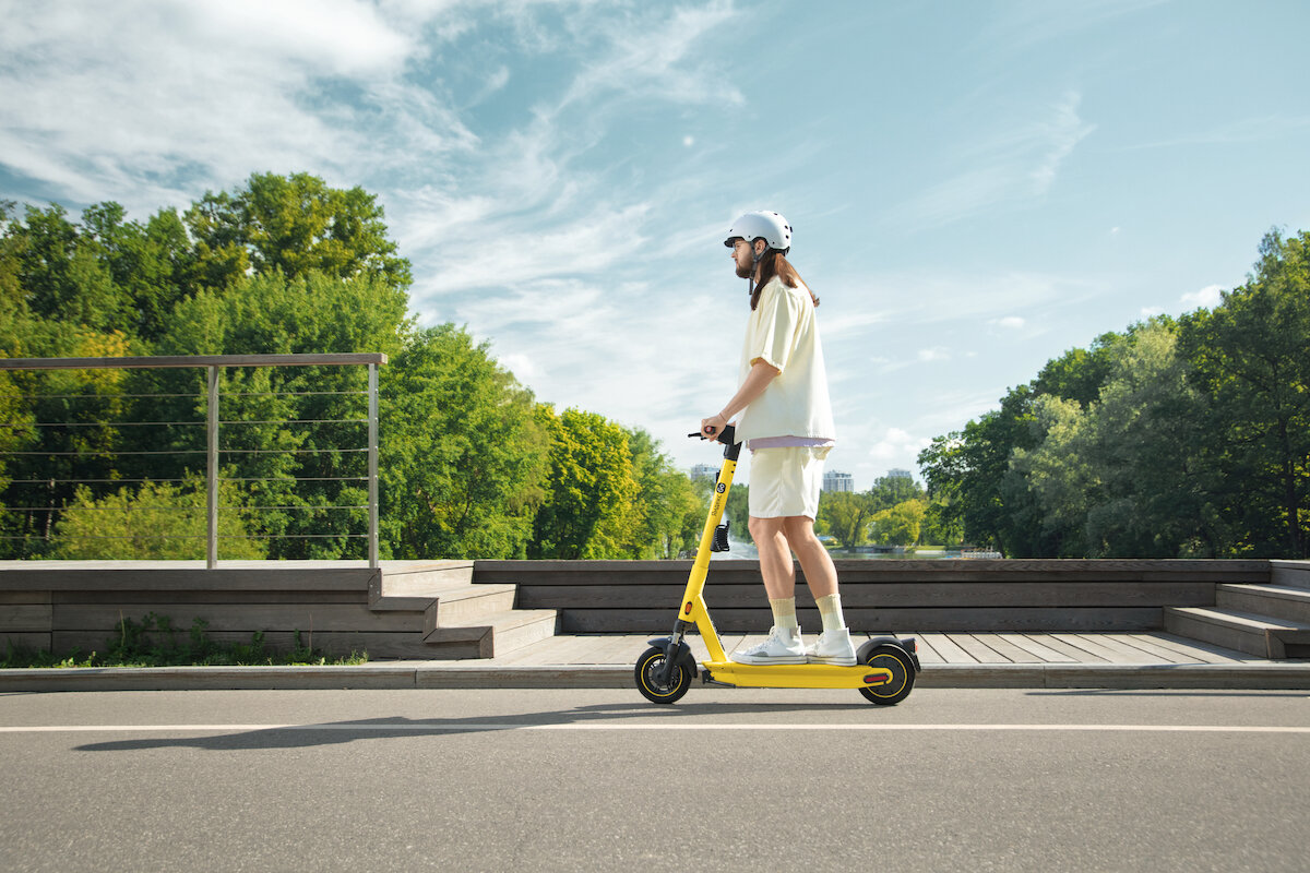 Внешне эти самокаты можно узнать по ярко-жёлтой расцветке и бодрым надписям. А еще они автоматически и плавно снижают скорость там, где гуляет много людей: около парков, детских садов или пешеходных зон.