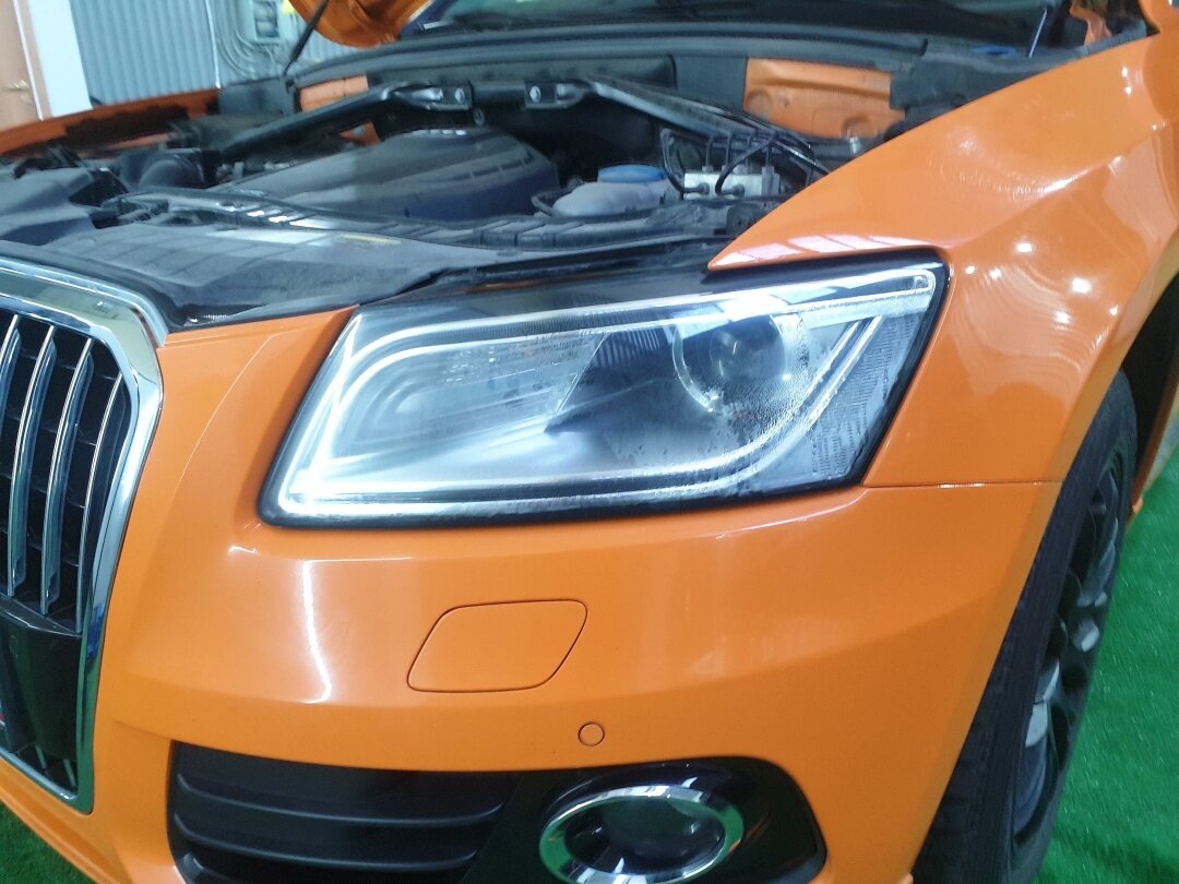 Отремонтировали запотевание левой фары автомобиля Audi Q5 интереснейшего оранжевого цвета. Причиной запотевания оказалась протечка по герметику. Наши специалисты все разобрали, почистили старый герметик, вымыли фару внутри и собрали на новый герметик. ______________
