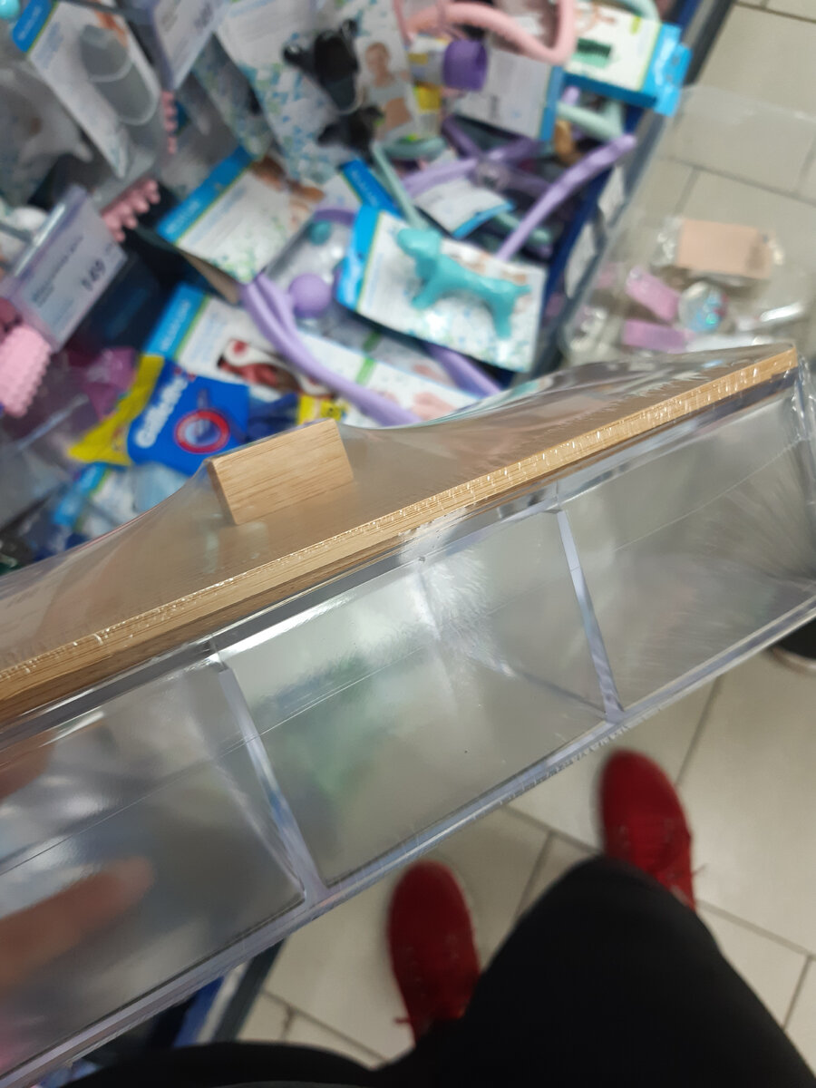 Доброго времени суток, дорогие читатели! Огромное вам спасибо, что уделяете время моим статьям, сегодня в воскресенье решила порадовать вас еще одной. Нашла несколько новых товаров в нашем любимом магазине, так что спешу показывать #новинки . В #FixPrice завезли новые органайзеры для хранения различных косметических средств или каких-то безделушек. Например, вот такой: Подобные органайзеры уже продавались в фикс прайсе ранее, но они были либо прозрачными, либо с блестками. А эти выглядят еще лучше предыдущих за счет деревянного элемента - бамбуковой крышки. Подобные товары можно встретить в Икее, но здесь, конечно же получается дешевле. Очень красивая стильная коллекция. Когда я была в магазине, то органайзеры как раз выставляли на полки, а ценников еще не было. Но, могу предположить по аналогии с другими такими товарами, стоимость будет 199 рублей. Далее вот такой красавчик для ватных дисков: Размер изделия 7,2 см на 7,2 см на 18,5 см. Стоимость 149 рублей. И вот такой органайзер дл