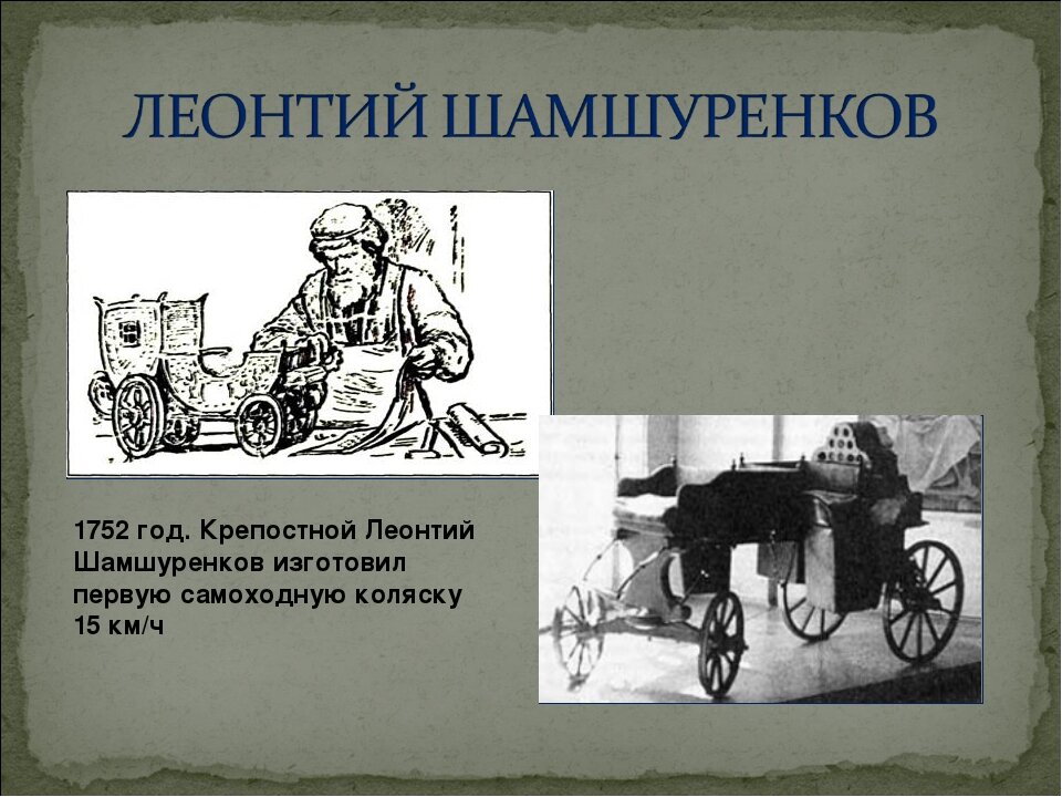 коляска считается первым русским самоходным экипажем. Не-
