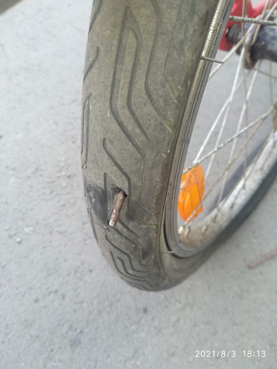 Сезончик выдался активный. За четыре месяца трижды пробить колесо велосипеда - это жёстко. Здравствуй неповторимый опыт разбора вела и замены камеры, ещё разок и я стану мастером : ) Ну а пока, погляди, какой монстр насквозь пронзил покрышку
