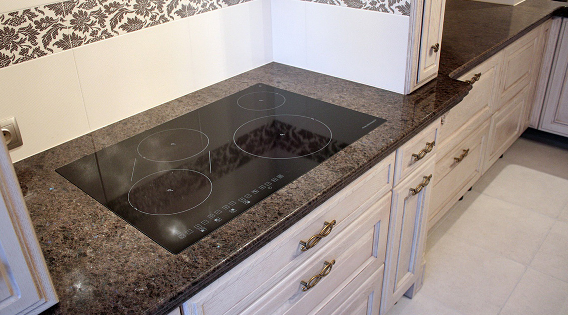 Какой должна быть столешница в идеале? Так, чтобы и посмотреть приятно, и попользоваться удобно? Цвет в тон фартука, гарнитура или пола? Какой цвет самый практичный? Что делать, если рабочая поверхность не вписывается в интерьер? На все эти вопросы мы с радостью ответим. Столешница должна повторять цвет хотя бы одного элемента кухни, в идеале – двух. Кухонная столешница может контрастировать с фасадами или фартуком, если выбрать приятные глазу сочетания цветов. Наиболее практичный цвет – любой, кроме тёмного. Тёмные столешницы очень капризны: на фоне видны мелкие крошки, капли воды, разводы, пыль – особенно в свете мебельных светодиодов. Практичные цвета – бежевый, натуральный коричневый, серый, светло-серый, матовый белый, белый с жилками и крапинками. Выбирая цвет столешницы на производстве, захватите образец пола, обоев, фартука или чего-либо ещё. «Чего-либо ещё» здорово помогает выбрать столешницу по цвету, чтобы не возникло проблем с сочетаемостью. Универсальные цвета – белый и се