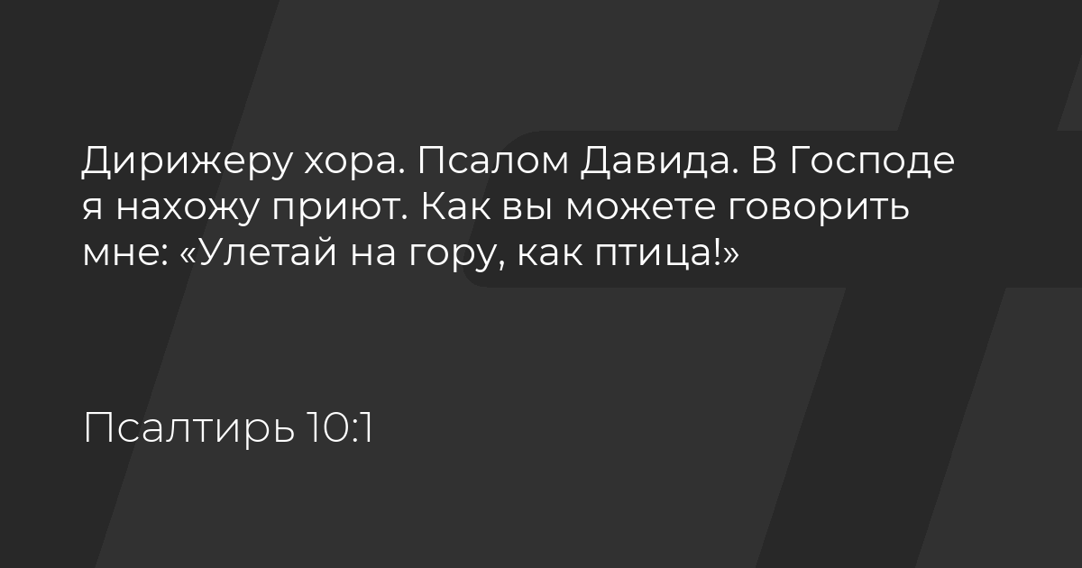 «На Господа уповаю; как же вы говорите душе моей: “улетай на гору вашу, как птица”? Ибо вот, нечестивые натянули лук, стрелу свою приложили к тетиве, чтобы во тьме стрелять в правых сердцем. Когда разрушены основания, что сделает праведник?» (ст. 1-3).