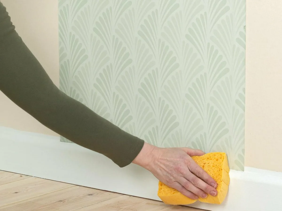 3. С помощью специальной кисти разгладьте обои от середины к краям.