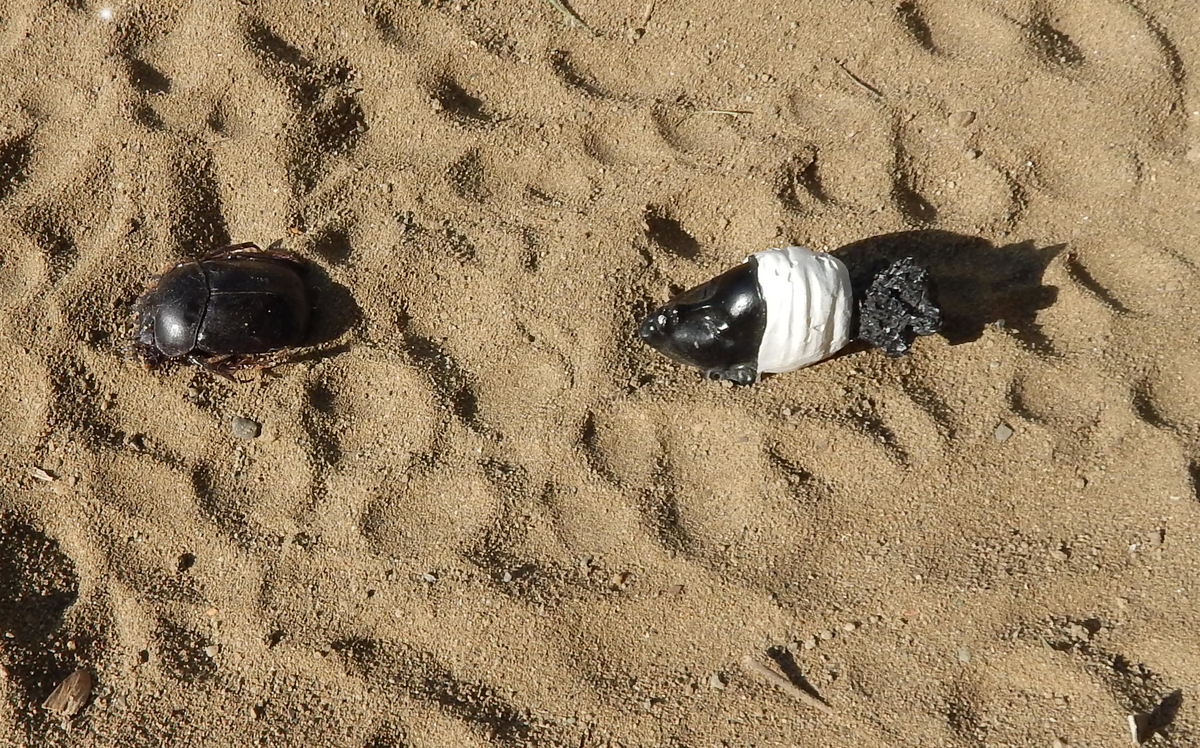 СКАЗ ДВАДЦАТЬ ВТОРОЙ Утром я не торопясь снова осмотрел вокруг все следы и понял, что скарабей-философ обманул меня. Он сделал большой круг и потом спрятался с навозным шаром за большим камнем, возле которого я рыл нору... И когда я пустился за ним в погоню, хитрый скарабей быстро втолкал навозный шар в мою нору, залез туда сам и изнутри засыпал вход землёй. Только поэтому я вчера не смог поймать проклятого вора. Но теперь он в моих лапах и от расплаты не уйдёт! Проклиная хитрого скарабея, я принялся раскапывать вход в нору, но в ужасе отскочил назад: мне навстречу из моей норы вылез страшный, отвратительный стафилин. Стафилин посмотрел на меня и расхохотался: «Хо, хо, хо! Сейчас я неплохо позавтракал твоим дружком. Своими страшными клыками я разворотил ему живот и выпил всю его кровь... А сейчас ты должен развлечь меня и рассказать мне свою историю.» Спорить со стафилином очень опасно, и поэтому я принялся рассказывать ему свою историю, последнее слово в которой принадлежало, увы, не