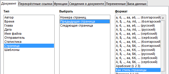 Работает она следующим образом. В Writer есть ряд встроенных переменных, к значениям которых можно обращаться – в данном случае это переменная PAGE, которая содержит в себе число страниц в редактируемом документе. Из этой переменной вычитается единица (тем самым учитывается «лишняя» страница на сопроводительное письмо) и делится на два. Полученный результат при помощи функции ROUND округляется до ближайшего целого числа – число "0" после обозначения функции как раз и означает количество знаков после запятой. Список других функций, которые можно использовать, и их синтаксис (правила написания) можно посмотреть в справке по LibreOffice (клавиша [F1]). Как нетрудно догадаться, поле «Формула» можно использовать вместо «Предыдущей страницы», указав следующее выражение: