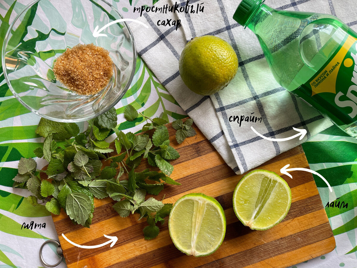 Лето и мохито — 2 слова, которые идеально подходят друг другу) Этот коктейль создан для теплого времени года. Неважно с алкоголем он или нет сочетание мяты, лайма и льда — превосходно. Мохито я попробовала лет 10 назад, тогда его делали "на совесть". Бармены не ленились и готовили по рецепту. В последнее время я встречаю мохито в виде спрайта со льдом, одним листиком мяты и кусочком лимона. И многие за это просят 350-400 руб. Я полностью разочаровалась в современной подаче мохито, поэтому начала летом его готовить сама. Во-первых, мне нравится процесс. Во-вторых, я делаю его так, как нужно именно мне) и постепенно в кафе я перестала заказывать этот напиток. Иногда коктейль я готовлю порционно себе и маме. Когда гости я делаю сразу большой кувшин на компанию. В этой статье покажу пример на порцию. Нам нужно пару ложек тростникового сахара. Можно использовать и обычной. Но тростниковый сахар все-таки отличается вкусом и цветом. По ощущениям он более сладкий. Этот сахар нам нужно растере