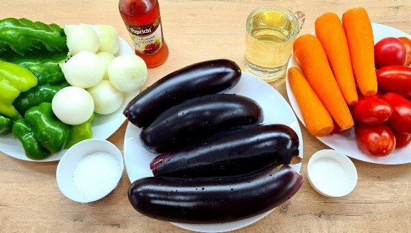 Каждый год пробую новые рецепты приготовления на зиму, и теперь я нашла идеальный вкусный и не запутанный рецепт - икра из баклажанов на зиму! Эта икра вкуснее нарезанной или тертой. Во вкусе баклажанной икры нет ничего лишнего, только натуральные овощи и баклажаны, закуска легко готовится, выглядит достойно, вкус не кисловатый, не липкий, не горький, не слишком соленый. Всего я приготовила небольшими порциями 30 банок, и сейчас поделюсь с вами! Если любите сладкое, добавьте по вкусу перец чили или чеснок, но мы все же хотели сделать классический рецепт без пикантности. Ингредиенты: ❗Выход: 2,3-2,5 литра Вкуснейшая икра из баклажанов на зиму. Пошаговый рецепт 2. Морковь нарезать мелкими кубиками, при желании можно использовать крупную терку. Перетираем и другие овощи, например, помидоры, получаем немного больше сока (я использую мясистые фрукты). Все ингредиенты для этого - стакан ароматного растительного масла, все овощи жарю или варю поочередно на подсолнечном масле 3. Все овощи с