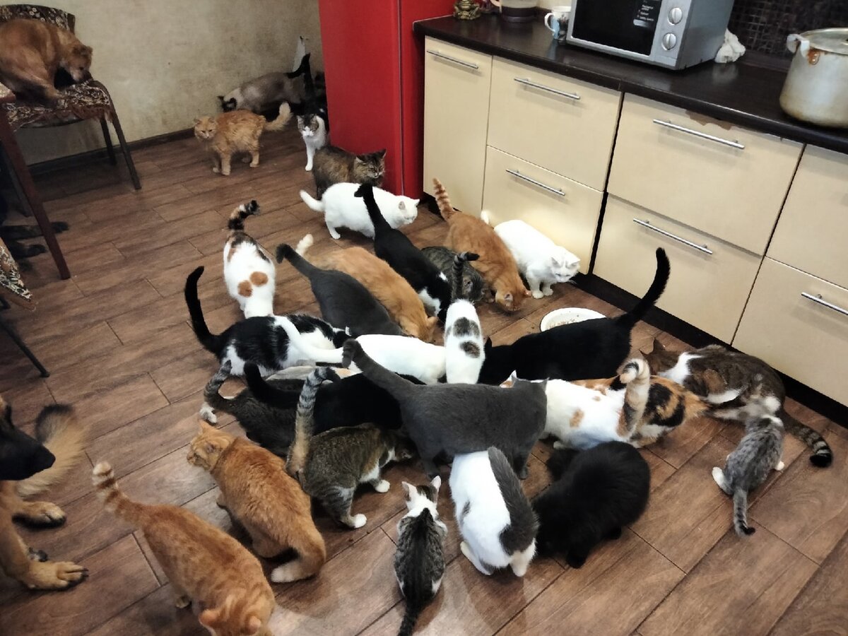 Сегодня хозяйка домашнего мини-приюта Людмила Ч. варила последнюю кастрюлю каши из всего что было (рис, гречка и остатки пшеничной крупы) в место рыбы банка консервы, пошло все в ход! Запасы крупы закончились. Хочется сказать вспоминая русскую литературу, что была это каша из топора, но нет, тут волонтер не скупилась не на чем и как в другой известной сказке, поскребла по сусекам и вышла необычная питательная кашка, кашка ассорти так сказать! Друзья! И просто неравнодушные люди! Нам очень нужна ваша помощь. У нас заканчиваются продукты питания, а пополнить запасы не за что. Пожалуйста помогите нам выжить. Приюту очень нужна ваша помощь. (Крупы, макароны, консервы, любая мясная обрезь, тушенка, сухари) мы примем любую помощь. У нас нет каких-то покровителей, мы существуем лишь добровольной помощи простых людей, которым не безразлична жизнь наших животных. Нам не выжить без вашей поддержки. Пожалуйста помогите!