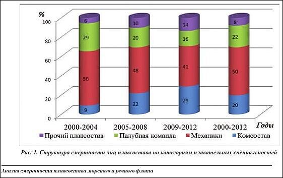 Вот несколько выдержек из научной работы «Анализ смертности плавсостава морского и речного флота», авторы А.А. Абакумов, О.К. Бумай, А.Б. Верведа, А.В. Иванченко, Р.В. Константинов, А.Е. Сосюкин, С.Н. Чупрова.