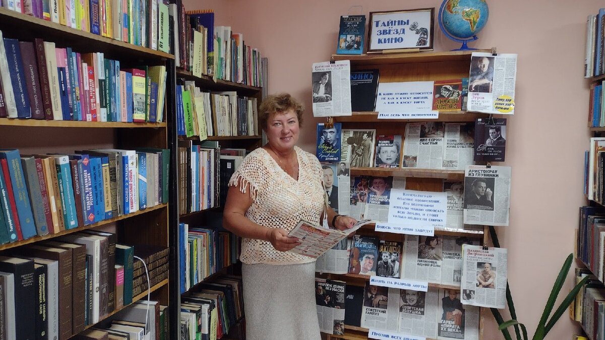 Презентация в библиотеке «Фолиант» книжной выставки, посвященной Дню российского кино 27 августа страна отмечает великолепный праздник, посвященный любимым фильмам детей и взрослых - День российского кино. Нелегко быть любимцем публики, звездой, на которую устремлены тысячи внимательных глаз. Слухи, сплетни, а порой и скандальные факты их биографии, как шлейф, тянутся за каждым известным киноактером. Но такова плата за всенародную любовь. С 4 августа 2021 года в библиотеке «Фолиант» начала работу книжная выставка под названием «Тайны звезд кино». Книги и журналы на выставке представлены в следующих разделах: «Нам есть что вспомнить», «Жизнь на разрыв аорты», «Против всех правил», «Боюсь, что меня забудут». Все они дают самые разнообразные сведения о жизни и творчестве российских киноактеров - Марины Ладыниной и Ивана Пырьева, Алексея Смирнова и Фрунзика Мкртчяна, Натальи Гундаревой и Фаины Раневской, Борислава Брондукова и Евгения Евстигнеева, Вячеслава Тихонова и Николая Парфенова, Вл