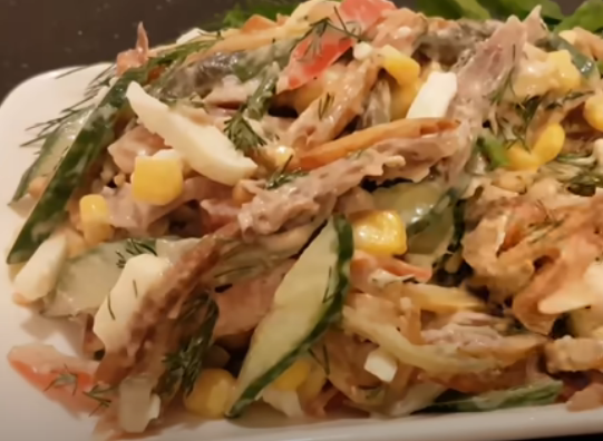 Сегодня будем готовить салат, который понравится любому мужчине. Картофель нарезать соломкой и залить холодной водой. Оставить на 5 – 10 минут. Затем воду слить, промыть картофель проточной водой, просушить. Можно использовать салфетки. Обжарить на растительном масле до приятного золотистого цвета. Отваренное мясо нарезать брусочками. У огурца убрать влажную серединку с семенами. Её мы использовать в салат не будем так как в ней много влаги и салат получится мокрым. Оставшиеся плотные части огурца нарезаем соломкой. Солёные огурцы так же нарезаем соломкой. Яйца нарезаем брусочками. У томата удаляем мягкую часть с семенами, а плотную нарезаем соломкой. Смешать в миске все ингредиенты и заправить майонезом. Добавить мелко нарезанный укроп. Посолить по вкусу. Салат готов . Приятного аппетита! Если рецепт понравился – ставьте лайк. Подписываетесь на мой канал!