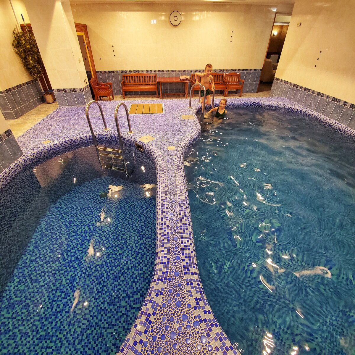 Утром пошли в бассейн в Шери Холл , были там одни, дети накупались до полного счастья Бассейн небольшой, но им ещё и велик был)