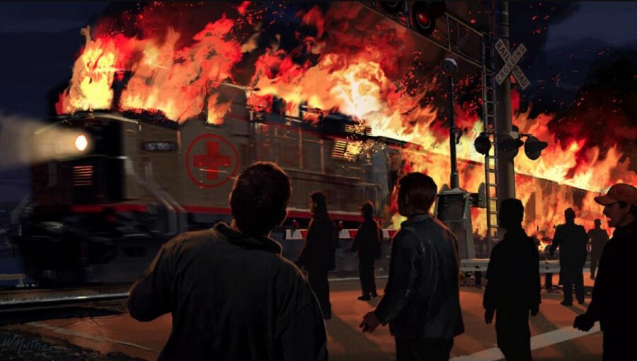 Если что, то сама песня называется "Поезд в огне" и ее легко можно найти в открытых источниках. А я назвал свое творчество немного иначе.