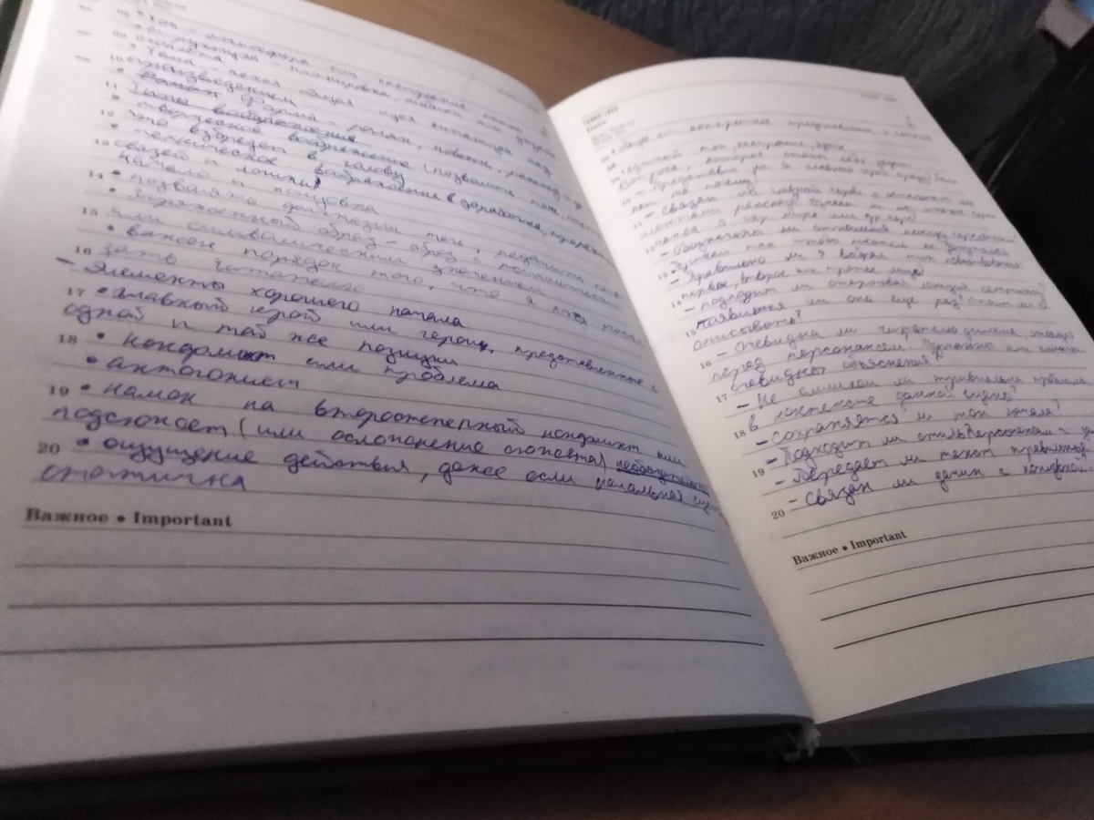 В тот момент, когда я твердо решил, что хочу писать я разом осознал скрытую пользу блокнотов и ежедневников. Раньше они казались мне совершенно бесполезными, лишней макулатурой в жизни, так сказать. Но вот все круто перевернулось. Сейчас я обязательно таскаю с собой небольшой блокнот или ежедневник, чтобы записывать в них все, что вбредет в голову. Иногда, там возникают такие странные идеи, что задумываешь о состоянии рассудка, хех. Привычка эта возникла в большей мере из-за совета в прочитанной мною "Книге Чудес" - эдакого пособия для тех, кто избрал путь фэнтези и фантастики, то бишь меня (о ней еще поговорим). "Пишите абсолютно все, глупости отсеются, а ценные идеи вы сохраните" - говорит эта книга на одной из страниц, ну а я послушно следую ее совету. Но также оказалось, что это единственный вариант для меня. Кто-то скажет что забивать идеи в заметки телефона гораздо быстрее и удобнее, но я не соглашусь с этим человеком. Я так и не научился быстро печатать в смартфоне, да и не в