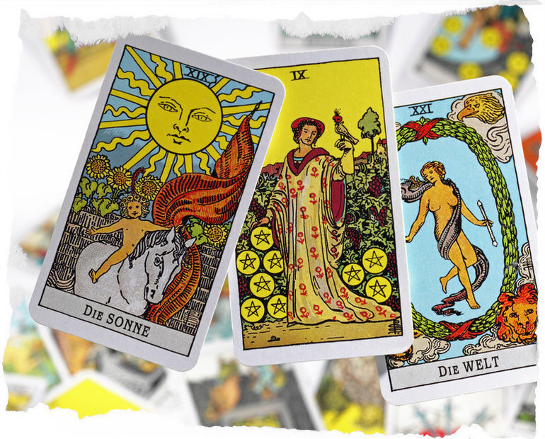 Карта дня - выбери карту и получи послание на день. Карты Таро могу дать дельный совет, направить и заставить задуматься над некоторыми вещами. Карты могут показать лишь один из вариантов развития событий, но выбор всегда остается за Вами... А теперь перейдем к картам. Посмотрите на картинку и выберите ту карту, к которой тянет больше всего. А теперь перевернем карты: Первая карта: Сила Сила: Значение карты дня Как карта дня Сила символизирует увлеченность и успех начинаний. Она рекомендует приложить свои таланты к работе или активизироваться в личном плане. В день, на который выпала такая карта, сил хватит на все. Если же возникнут какие-то проблемы и препятствия, не нужно пугаться. Они будут преодолимы, но действовать надо без агрессии, но решительно, не бояться и в контратаку переходить. Тогда все начинания обязательно закончатся успешно, а противник будет принужден к капитуляции. Сила: Совет карты Карта рекомендует не бояться проблем и «черных полос» в жизни. Нужно любое дело делат
