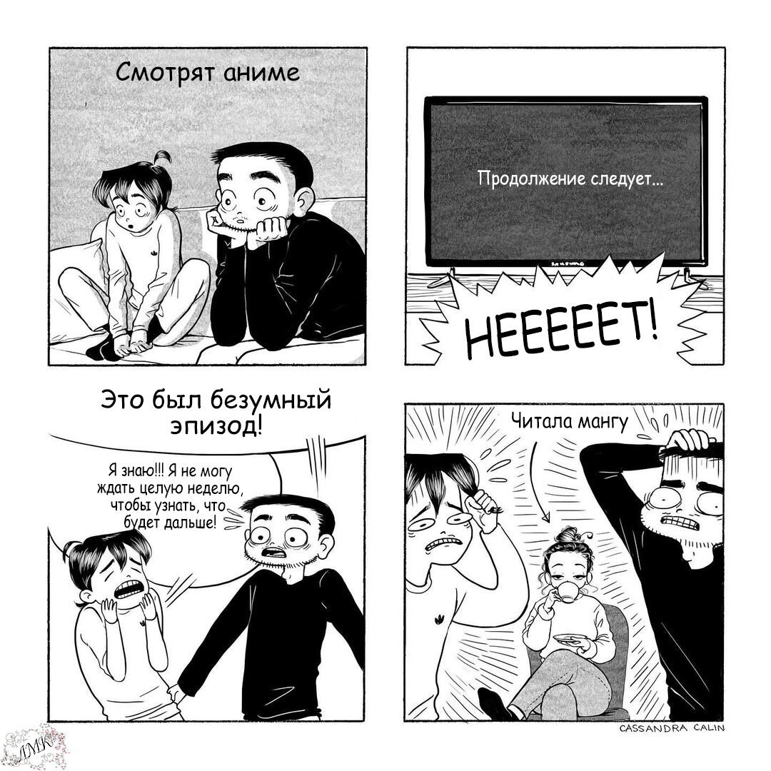 Решила сделать новую подборку, от этой замечательной иллюстраторши, по которой я дико соскучилась, пока она выкладывала комиксы только платно. Сейчас оказывается, он просто пытается соблюдать некоторое равновесие. Часть комиксов она бесплатно выкладывает на своем аккаунте в инстаграм, а самые интересные по ее мнению, идут в платном доступе на небольшую сумму. Начнем с двух коротких зарисовок и небольшой истории от меня. На самом деле я довольно взрослая девушка и в детстве безумно любила аниме. И тогда за это могли даже побить. Сейчас я вижу, что люди могут высказывать свое мнение как хотят и имеют больше возможности для самовыражения. И, я рада, что сейчас именно так. Смотреть аниме и читать мангу перестало ровняться для других людей - деградации. Люди начали понимать, что в любом жанре искусства и развлечения есть что-то низкого качества, а есть высокого. У меня не поворачивается язык назвать "Атаку титанов" мультиком для тупых. Нет, это качественная и продуманная антиутопия, котор