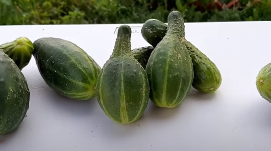 Огурцы очень сильно начинают плодоносить в августе. Наступает их время. Именно в это время многие огородники начинают замечать что образовывается очень много кривых и уродливых плодов. В этой статье я хочу разобрать наиболее частые причины, которые приводят к такой беде. К такому процессу чаще всего приводит недостаток питательных веществ. У растения нарушаются все очень важные процессы и плоды получаются некрасивыми. По искривлениям на плодах очень часто можно определить какого именно удобрения не хватает огурцам. Если плоды становятся очень бледными, а вершинка плода заострена, то это скорее всего не хватает азота. Если огурцы становятся тонкими у основания, то это не хватает калия. Если края листьев становятся бледными, а потом и вовсе засыхают, то это нехватка кальция. И если бутон засыхают и отпадают, то это нехватка магния. Полив тоже играют очень важную роль в жизни огурцов. При неправильном поливе огурцы получаются уродливыми и невкусными. В августе огурцы очень много плодон
