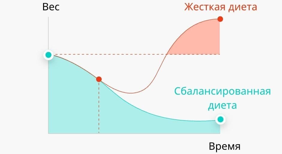 Поэтому пока диеты в сторону, надо работать над увеличением дневной нормы потребляемых калорий. Но не резко. Весовые "качели", увы, не остановить, но можно постараться уменьшить амплитуду.