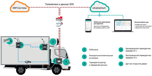 Рис. 1. Контроль температурного режима с помощью системы мониторинга ThermoFleet в фургоне