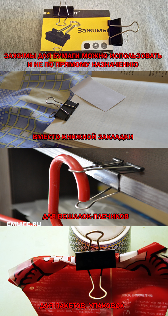 Зажимы для бумаги можно использовать не по назначению, и облегчить себе жизнь. Вот несколько лайфхаков: Это и многое другое на Emlife.RU. Ставьте Лайк, или подписывайтесь.