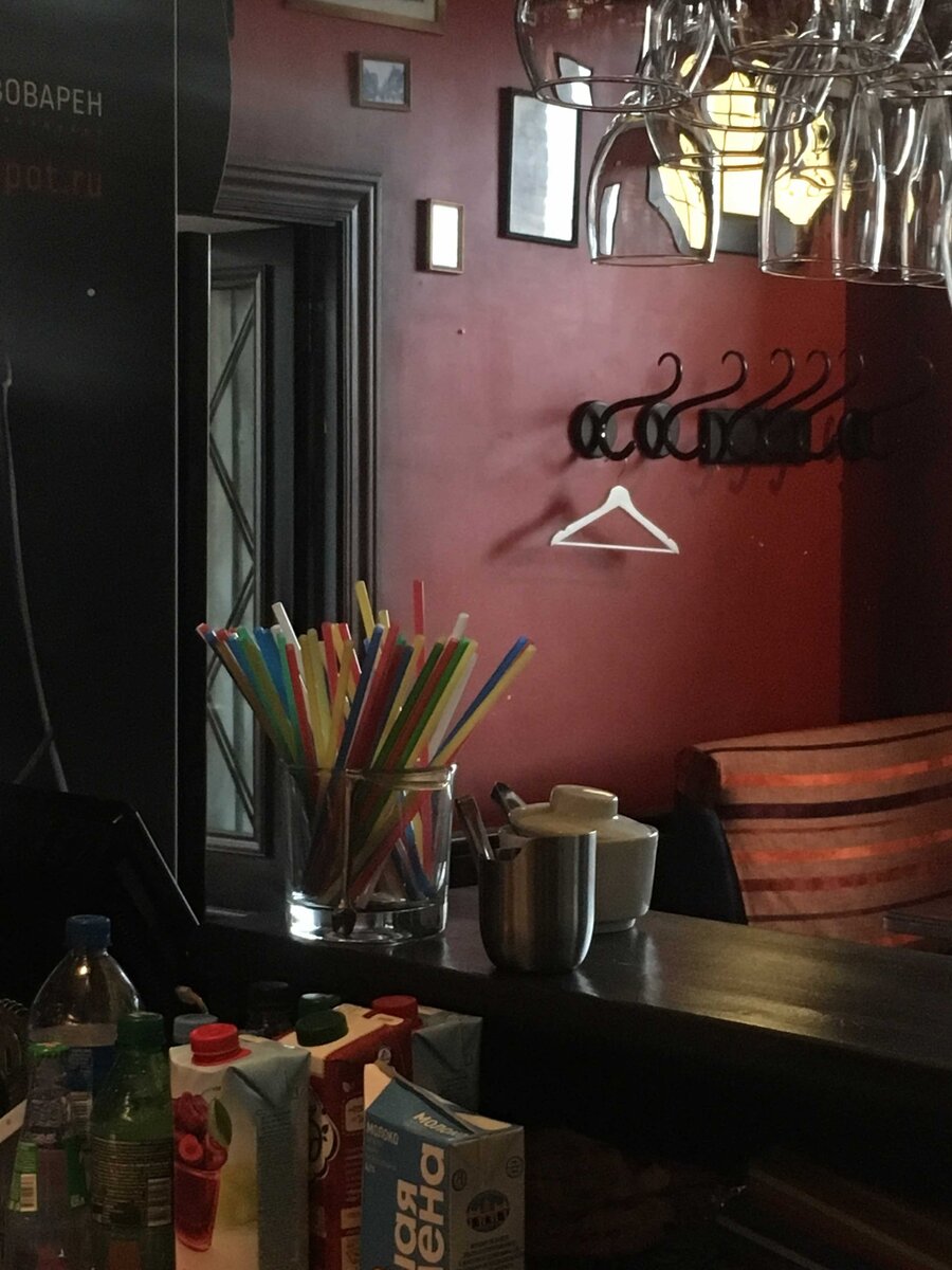 "А куда выкидывать,если мусорное ведро только за баром и на мойке. За бар бегать значит нарушать чужую работу, а здесь это никому не мешает. "
