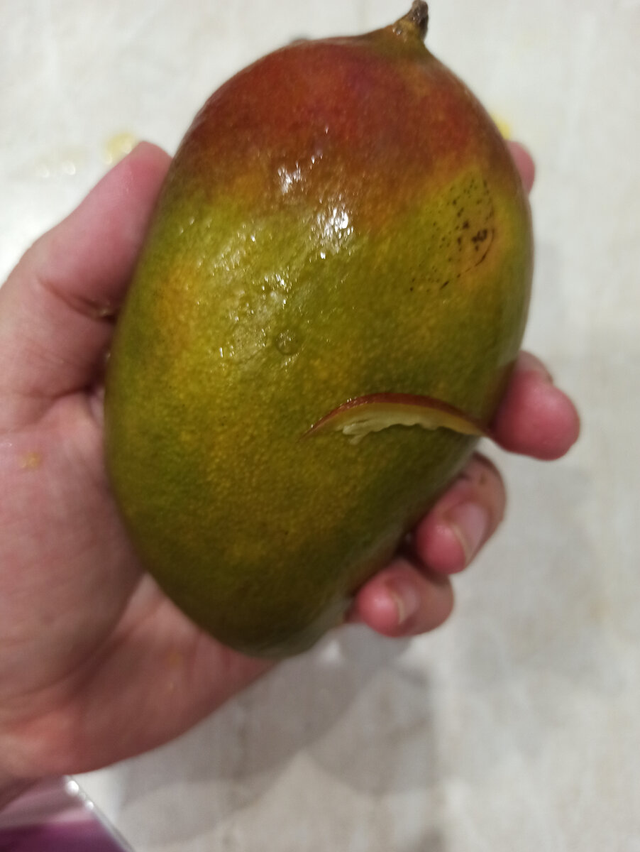 В магните и 5ке часто попадались манго. Но всегда были зелёные. А тут иду как-то, скорее по привычке дотрагиваюсь, а он мягкий. - Это судьба, надо брать! Ну и взяла, тем более он ещё и со скидкой был. Надо заметить, что о существовании фрукта я знала, вкус примерно представляла (пробовала консервированные в сиропе). Но вот о то, что у него внутри не имела никакого представления 🤣 И никогда не гугл Ла, в общем-то необходимости не было. Вот вы знаете, какие у него косточки? Когда попыталась разрезать, нож наткнулся на косточку. Тырк-тырк в разные стороны, везде косточка 🤣 С горем пополам разделила на 2 части, он, кстати, от косточки не особо отделялся. А мякоть была очень мягкой. Поэтому весь измяла. На вкус все прекрасно. Смесь нектарина и ананаса. Сочно, нежно, вкусно. Но косточка... Она плоская и размером с детскую ладошку. Занимает почти половину содержимого. Ну может, чуть меньше половины 🤣 Но все равно до неприличия много 😂 Так что если вы, как и я, никогда не покупали