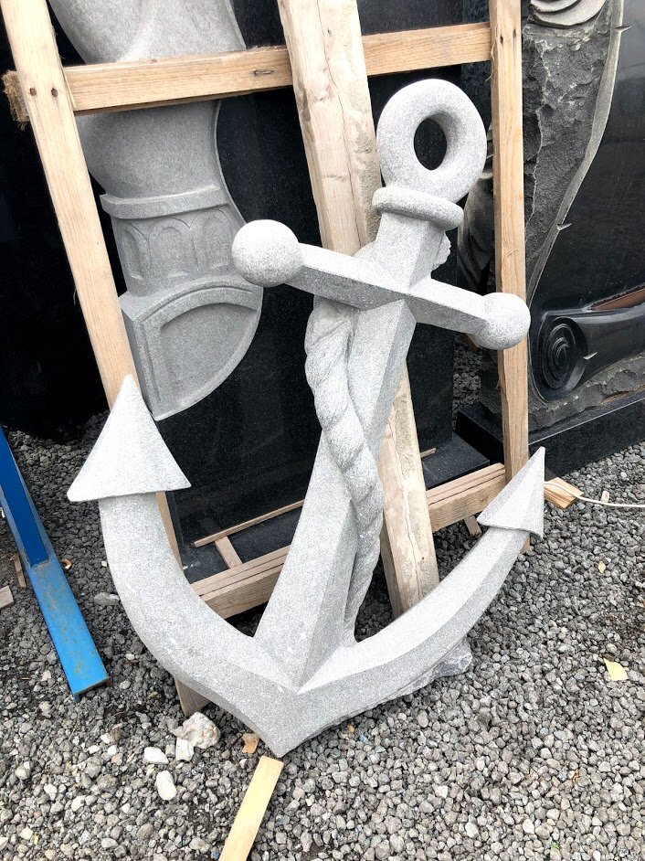 Иногда на памятнике можно увидеть изображение или вырезанную из камня фигуру якоря. Наличие такого знака может указывать на профессию покойного, однако, это не всегда соответствует истине. В раннем христианстве якорь имел большое символическое значение, отголоски которого дошли до наших дней. Ещё со слов Христа якорь отождествлялся с надеждой. То есть, с тем чувством, что удерживает душу на земле - надежда на лучшую долю, любовь, счастье. Позже, после принятия Христом мученической смерти, когда христианство было под запретом, якорь заменял верующим крест, был его замаскированным символом и надеждой на возвращение Иисуса. Так якорь стал ещё и символом спасения. Символическое значение якоря, удерживающего душу на земле, осталось прежним. Изображение якоря с короткой цепью обозначает трагически оборванную жизнь в молодом возрасте. Часто изображают якорь, застрявший в расселине скалы. Скала, в христианстве, символизирует Христа, Церковь, христианскую твердь. Две скалы - путь в загробны
