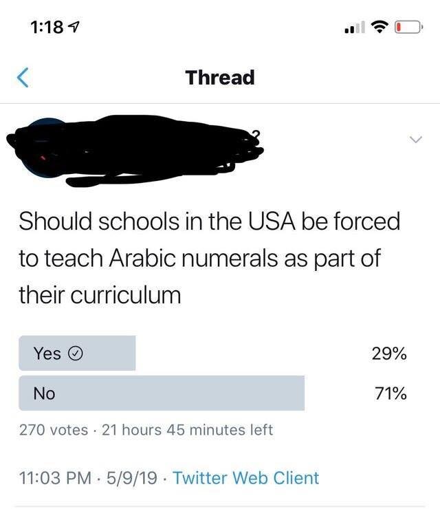 Опрос в США: Нужно ли обязать школы в США обучать детей арабским цифрам?