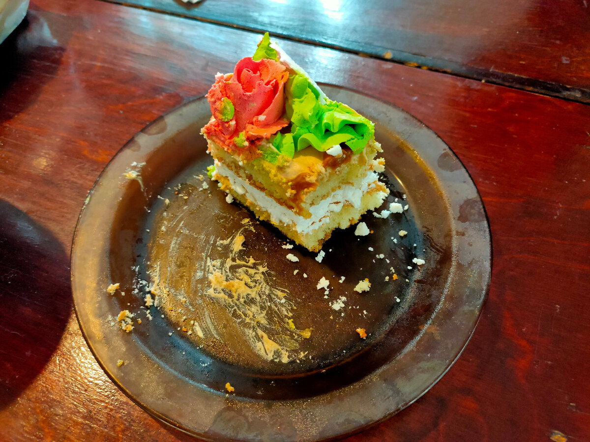 Печаль. Как-то грустненько стало... Бывает такое чувство у Вас, когда чего-то хочется? Вот хочется, а чего не знаешь... Вот и у меня вчера было такое чувство. Встала утром и говорю "Чё та сладинькава хочица..." Поехали мы по делам, а заодно зашли в пекарню в Кировском. А там тортики. Они такие, знаете, как в детстве: Советский квадратик обсыпан крошкой, а сверху розочки из масла... Помните такие? Я помню. Они всегда с ужасно сухими коржами, будто ждали тебя с прошлого дня рождения, когда ты их не купил... Вот и этот смотрит на меня и говорит "Помнишь, ты на 10 лет купила не меня, а Наполеон? Я нашел тебя..." В общем глянула я на него... И ушла искать другой. Обошли магазины... Нету. Зашли в кафе... Ну вроде милый тортик. Состав: сахар, яичный порошок, мука, эмульгаторы, красители, ароматизаторы, Е, Е, Е... 4 разных на вид торта, а состав один. Ушли. Обошли вокруг всё, но пришлось вернуться к тому, который ждал меня 20 лет и наверняка высох по мне еще сильнее. Пекарня. Делают сами. Спр