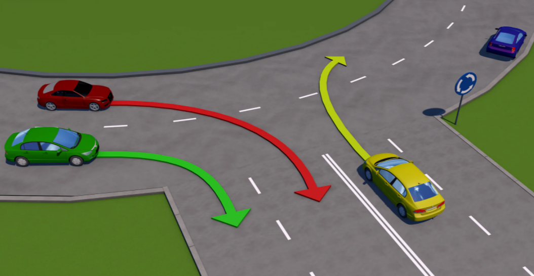 Здравствуйте, уважаемые автолюбители! Рад вас снова видеть на новой задаче на знания правил дорожного движения. В этот раз задача будет связана с круговым движением. Как показывает статистика, только 70% опрошенных справляются с данной задачей и это на самом деле не очень хорошие показатели. Поскольку круговое движения встречается довольно часто, особенно в больших городах, то знать как действовать в данной ситуации должен каждый. Как обычно, вас будет ждать вопрос с предложенными вариантами ответа, а далее разбор ситуации и правильный ответ. Не буду долго затягивать, удачи! Кто из автомобилистов нарушает правила дорожного движения? 1. Водитель зеленого авто 2. Водитель красного авто 3. Водитель желтого авто 4. Водитель синего авто Ответить сразу без раздумий тут вряд-ли получится, поэтому время на подумать у вас есть. Но имейте в виду что при вождении такого не будет и действовать придется на основе ваших знаний. Итак, давайте рассмотрим данную ситуацию поближе: Следовательно, верный