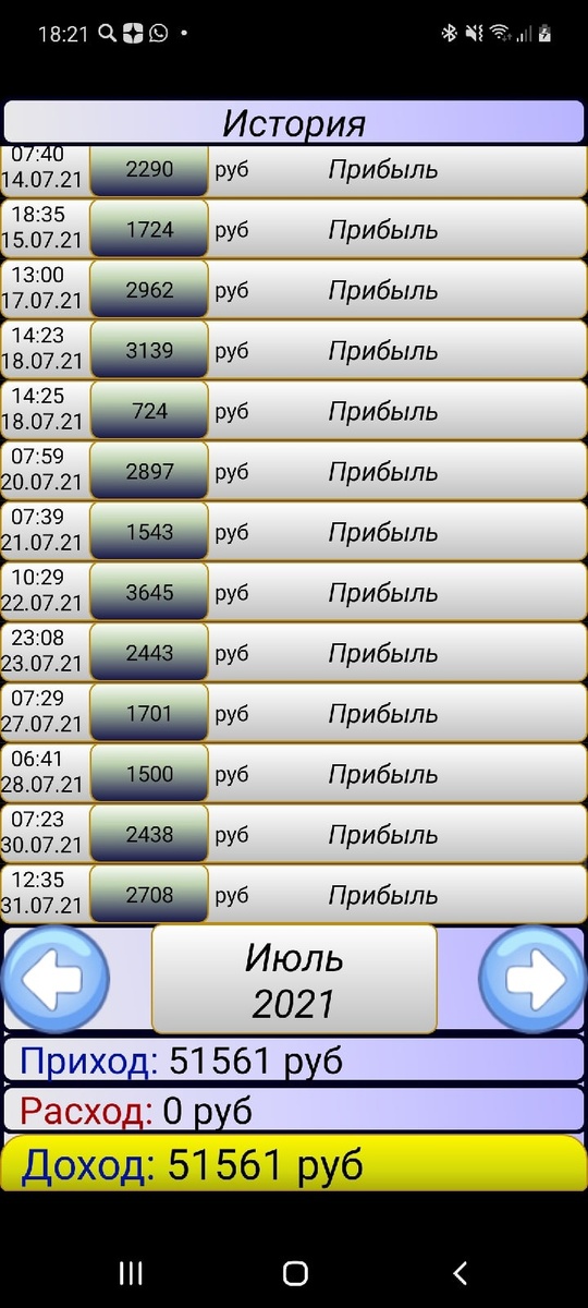 Всем привет, наконец-то сел посчитать все доходы и расходы за июль. Месяц получился в минус. Прям вообще жесть. Дальше вы увидите, конкретно, цифры. Агрегаторы. Доход Пожалуй начну со своего графика. Воскресенье и четверг - 100% выходной. В остальное время - с 7:30 утра до 12 утра. Далее с 19:00 до 21:00. Итого получается 6:30 часов на линии. Это очень мало... Если бы было без выходных, может быть еще, и нормально, но нет. В августе постараюсь работать лучше, там нужна и зимняя резина. И машину к зиме подготовить. Это сумма грязью + к этой сумме прибавить 2500 за субботу 31 июля. Итог 54000 грязными. По двум агрегаторам. Расходы + доп. доходы. Пожалуй начну сказ о своих расходах. Начнем с долгов. В долги я влез еще 2 года назад. Сумма долгов более 35000. Не так много. Поэтому я потихоньку гашу их. и их осталось уже тысяч 20. Кредиты У меня был займ, который я успешно досрочно закрыл. + еще есть, про которые я расскажу в отдельной статье. Машина С машиной у мен