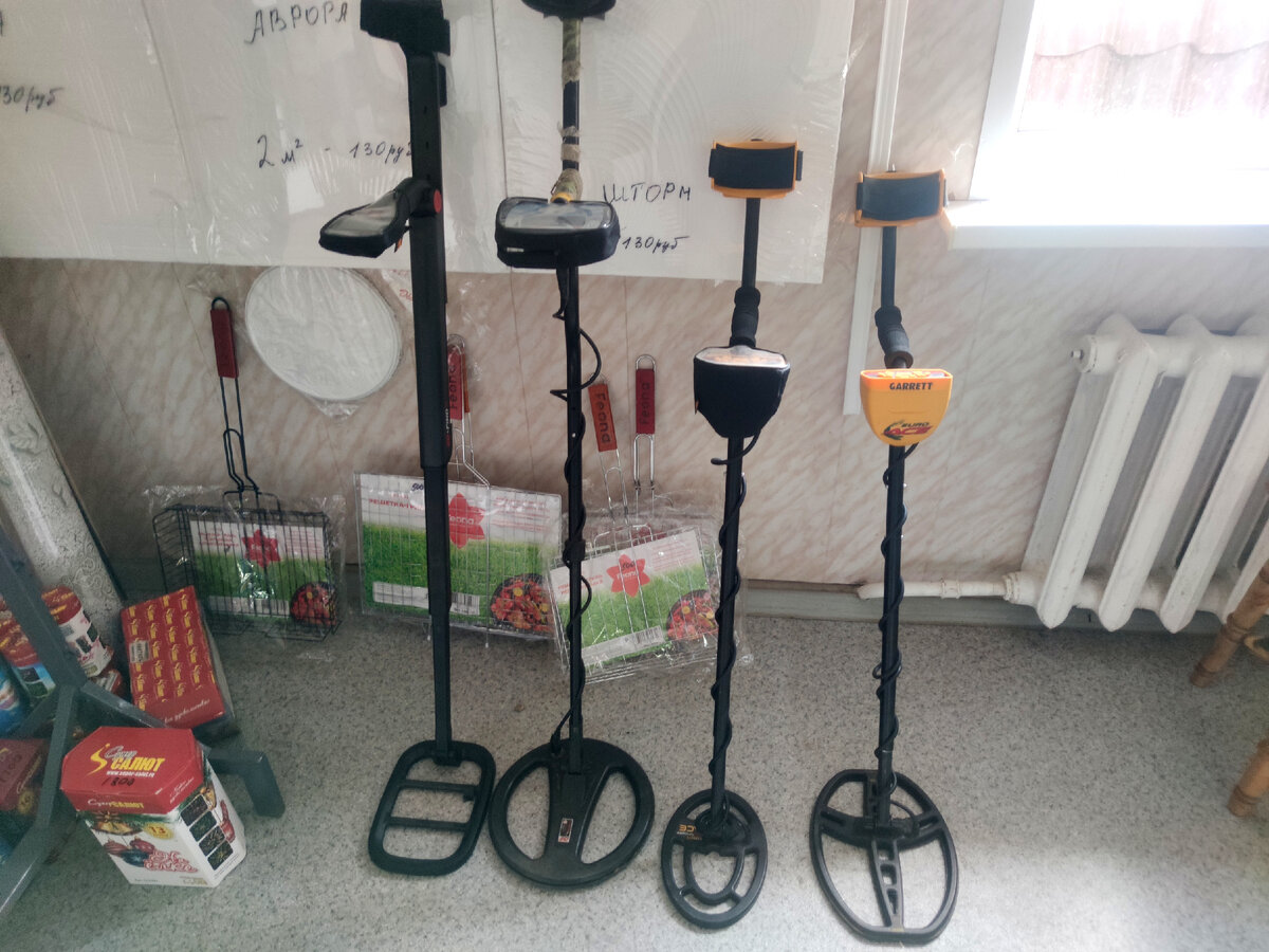 Приветствую вас мои подписчики и случайные гости моего канала. После переезда в провинциальный город, я устроился на подработку в местный строительный #магазин , который расположен от моей деревне не так далеко. Я просто на данный момент живу в своей деревне, пока в квартире идёт ремонт и вынужден подрабатывать где-то поблизости. Как многие из вас знают, я занимаюсь поиском с металлоискателем и за все мои годы поиска, у меня накопилось немного металлоискателей. В наших краях, каждый второй занимается поиском металлолома. Но не у каждого есть возможность купить себе хоть не дорогой металлоискатель. И тут мне на ум пришла идея, а что если не сдавать все мои металлоискатели в аренду? Тем более площадь в магазине позволяет. И так, вот они. Это 4 легендарные металлоискателя, которые пользуются популярностью в копательских кругах. Сейчас лето, а лето это не сезон для кладоискательства и поэтому спрос маленький, но все кто видят их, говорят что придут за ними обязательно. Недавно произошла